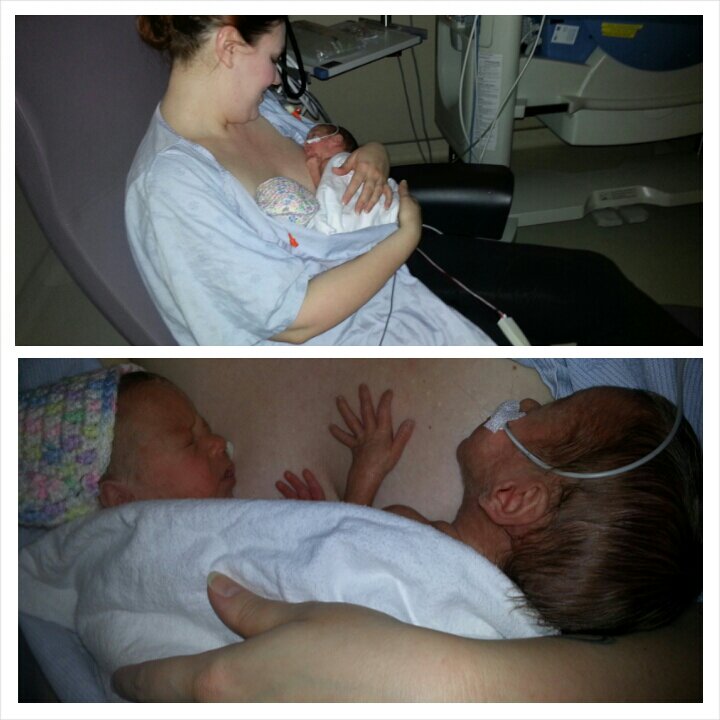 Lately when I have been kangaroo holding the girls, Ella has fallen asleep while Raegan and I have hung out, but today they switched it up with Miss Raegan quickly falling asleep, mouth open and everything, while Miss Ella was wide-eyed and bushy tailed. While her sister napped, Ella stared up at me as we chatted and sang songs.