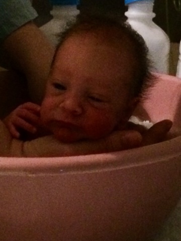 Raegan had a bath this week, which was hilarious and adorable, and left her with super soft, fluffy hair. Afterwards, we dressed her in a sweet cupcake onesie that seemed small enough for a doll.