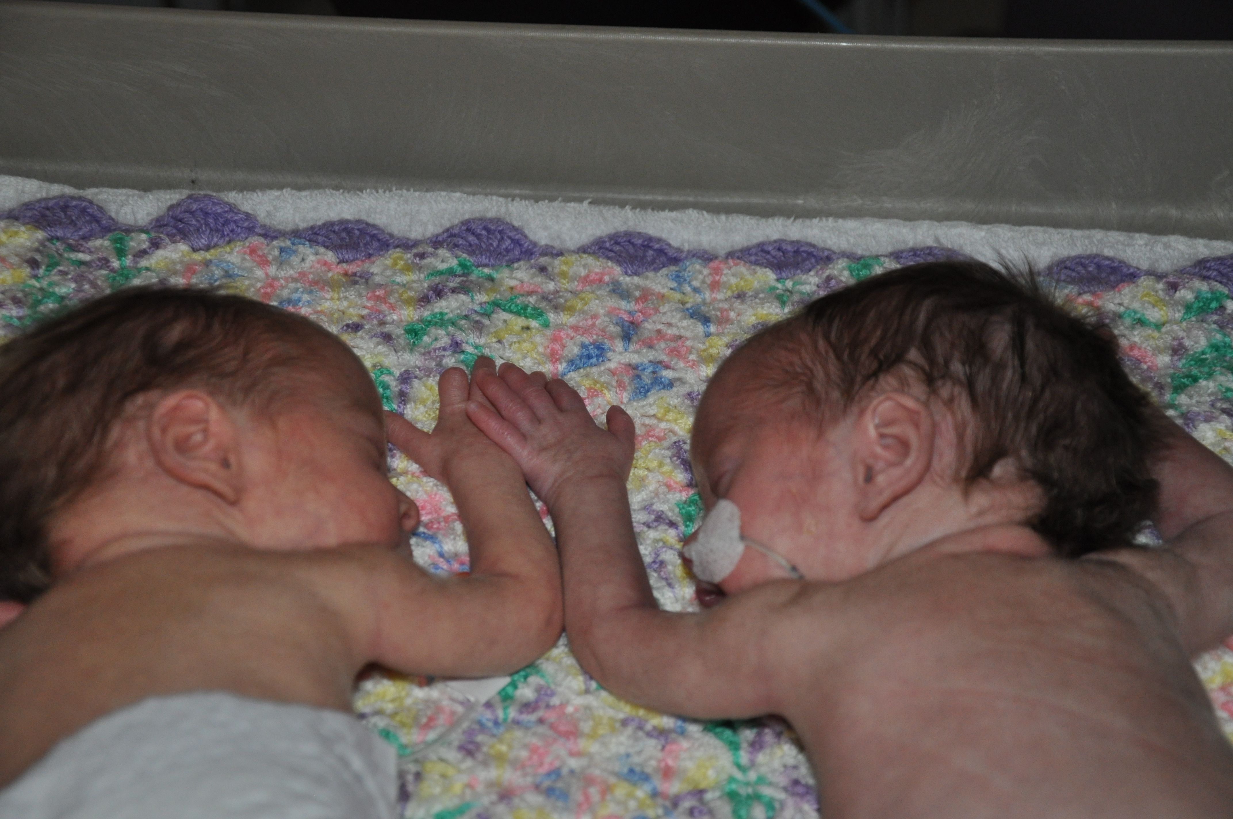 There, the two smallest, most amazing sweet girls were waiting for me. That moment was filled with emotion that cannot be put into words. The nurses explained the machines and how the girls were doing. I was shaking as I put my arm in to touch my girls for the first time.