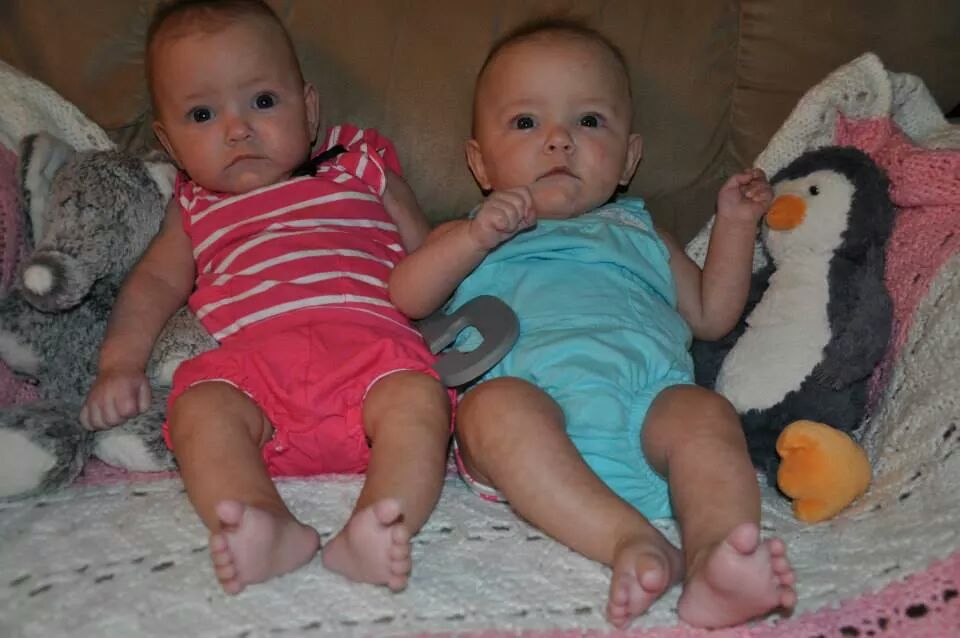 The girls continue to do really well, and seem massive! The newborn clothes have all been put away and there’s about an inch left in their 0-6 month sleepsacks. We don’t head to the doctor for another couple weeks, so I’ll know then the actual weights as opposed to my rough estimate.