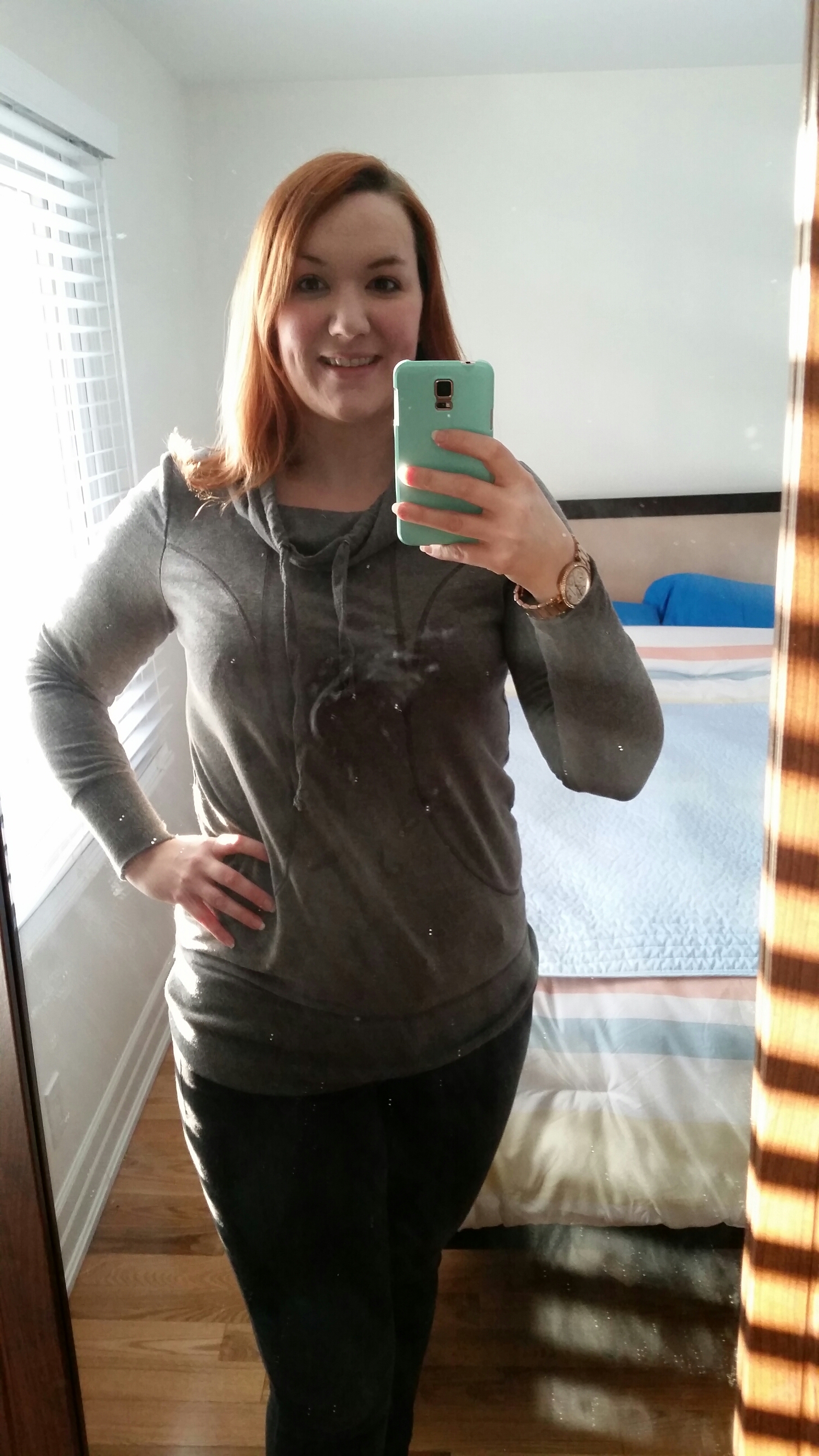 I’m doing some super easy exercises at home in addition to walking. We haven’t gone out much thanks to the disturbingly cold weather we’ve been having, but pushing my double stroller through the ice and snow definitely got me extra points. I do 100 squats a day plus some other core based exercises like planks and bridges.