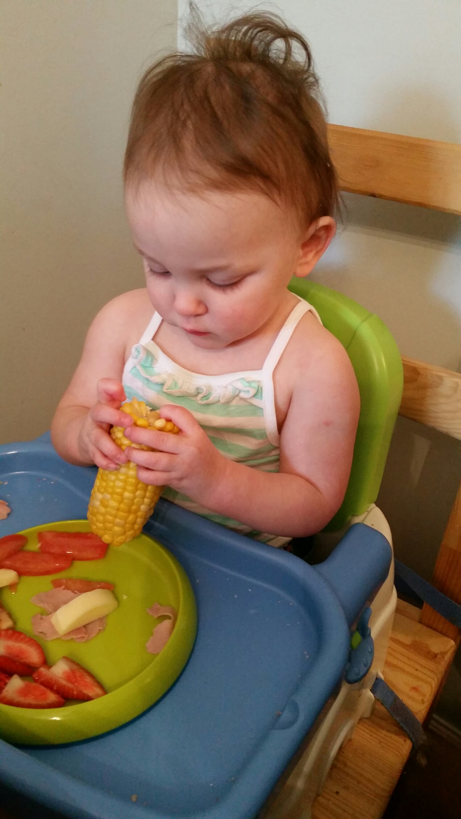 Raegan is super close to walking. She can walk holding onto your hands and cruises everywhere. She’s her usual feisty self, and has now taken to picking up her plate while staring at you and turning it over so all her food falls off. It’s quite lovely. Raegan also has the sweetest little curls in her hair, which she mostly gets from twirling her hair before falling asleep.