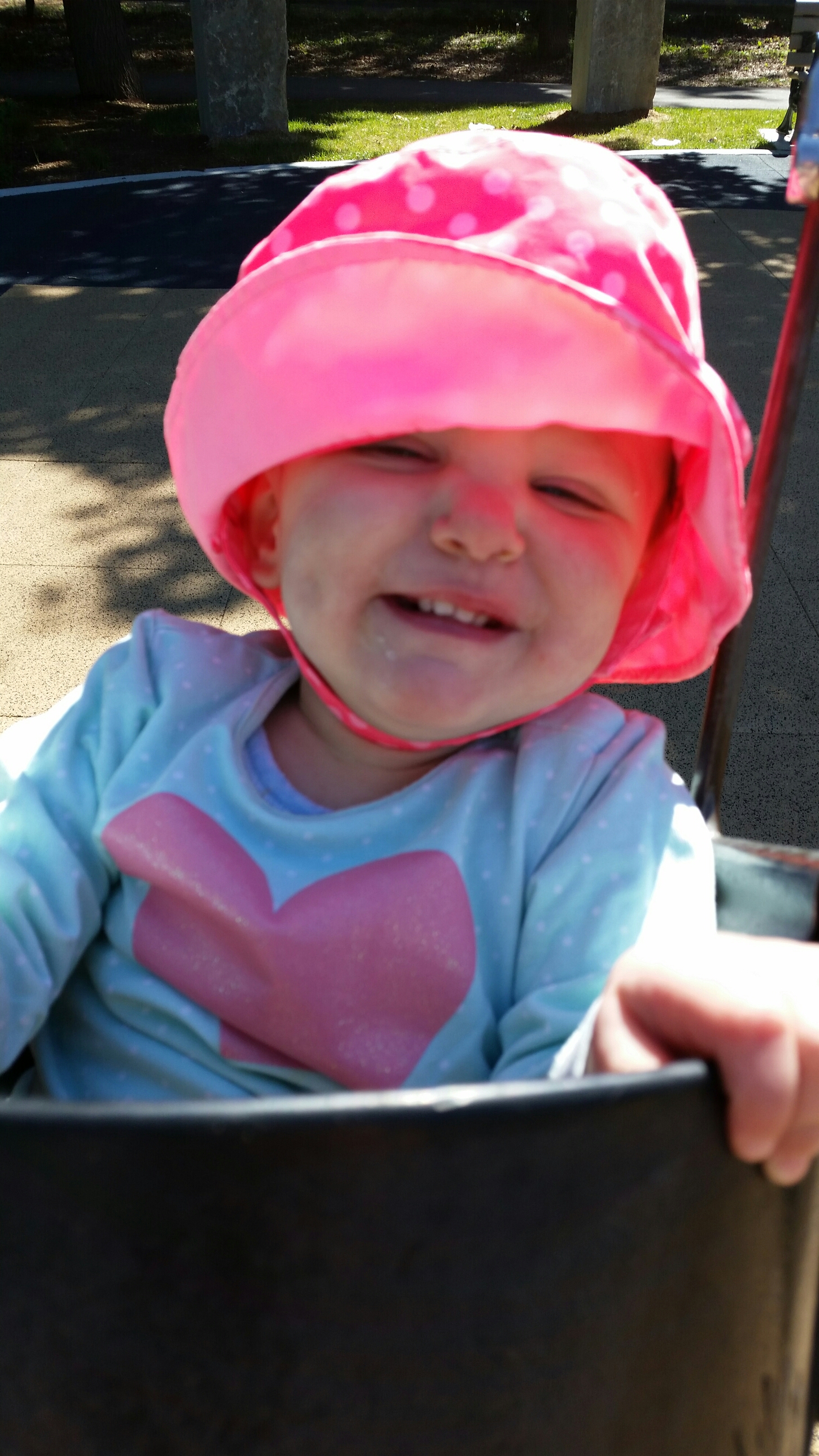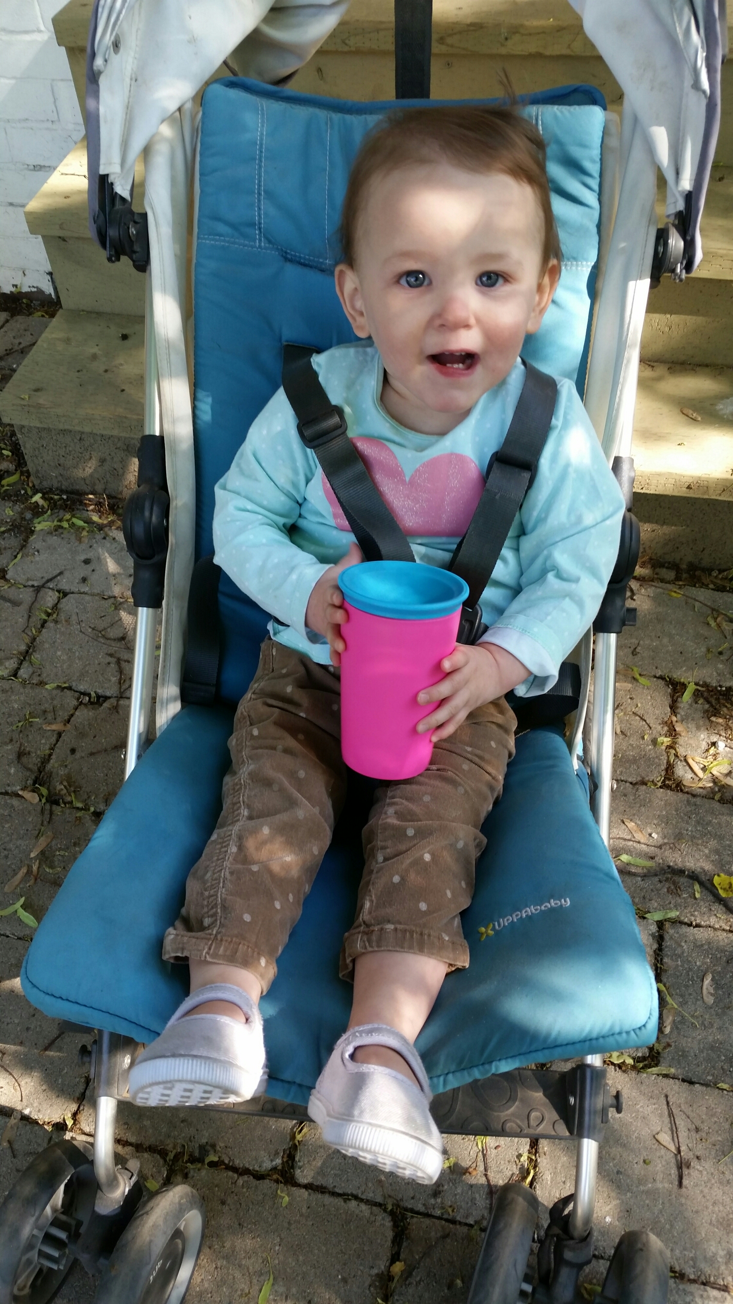After breakfast, she was so cuddly with me, it was so nice to be able to give her all my attention. First, I took her for a walk and listened to her babbling to herself, so happy to be facing everything. Every time I peeked in at her, she would give me a huge grin. Her little legs were crossing and uncrossing and pumping up and down. All I could see from the top of the stroller were her feet, such happy feet they made me laugh.