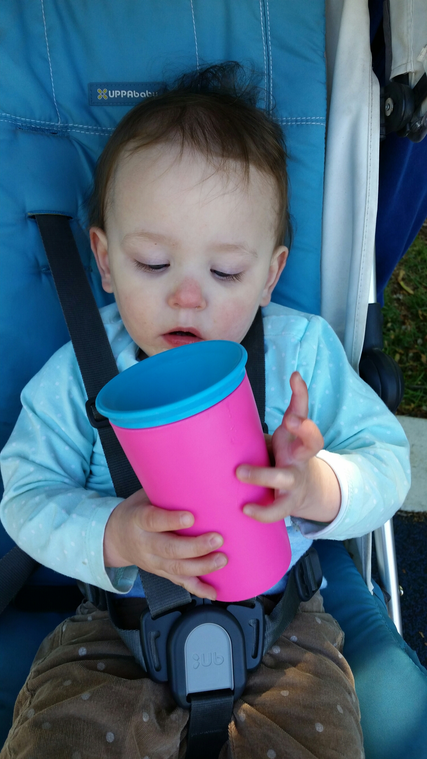 Then, the two of us sat on the bench and had a snack (she didn’t share but I enjoyed my tea) while watching the other kids. She was mesmerized by the swings going back and forth and we sat there for about ten minutes, which is like four hours in Raegan time.