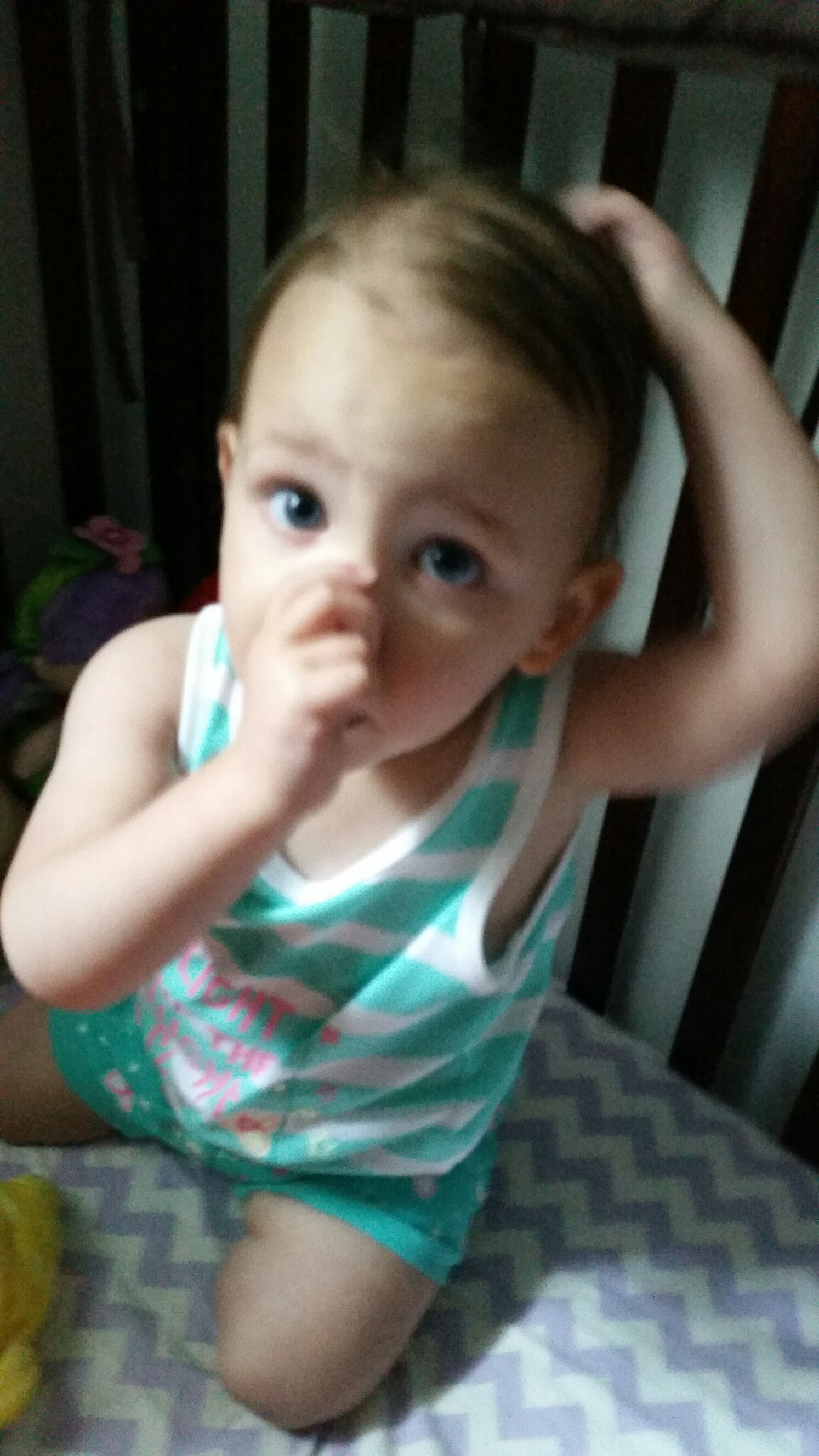 Raegan is still my wild one; always on the go, never stopping. She’s not walking on her own yet but loves to walk holding hands or a toy or pushing Ella in the stroller. She stands up more on her own for longer times, so I guess we’re getting there πŸ™‚
