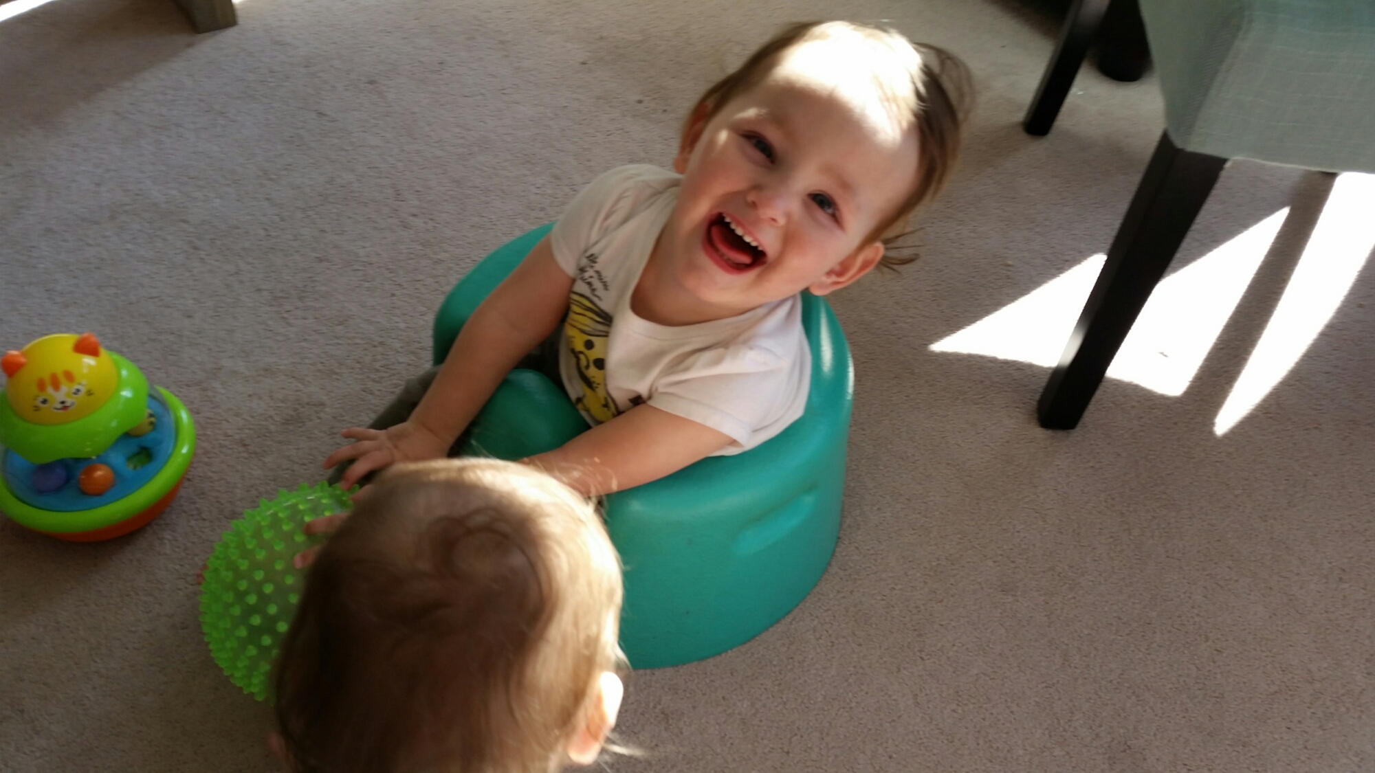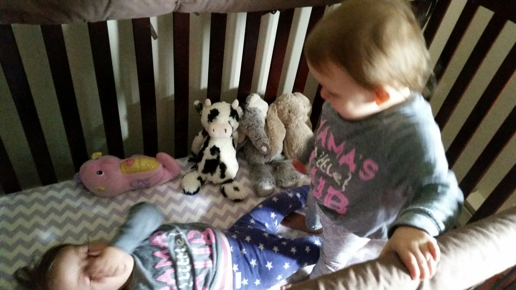 The girls haven’t been feeling great thanks to some daycare germs but have kept their appetites and willingness to play. Raegan was weighed today and clocks in around 22 pounds. Ella was about 21 the last time she was weighed, which is hard to believe that the Itty Bitty one could be bigger!